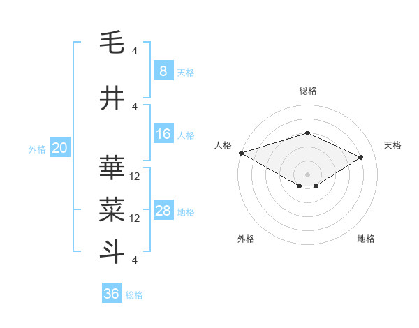 毛井 華菜斗さんを姓名の画数から五運を鑑定