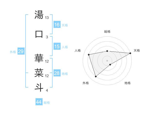湯口 華菜斗さんの天格は16画の5点!