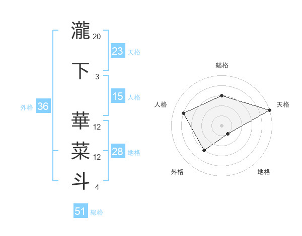 瀧下 華菜斗さんの天格は23画の5点!