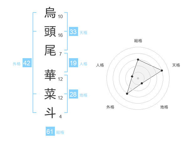 烏頭尾 華菜斗さんの総格は61画の3点!