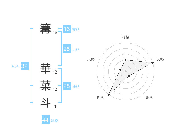 篝 華菜斗さんの天格は16画の5点!