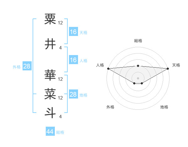 粟井 華菜斗さんを姓名の画数から五運を鑑定