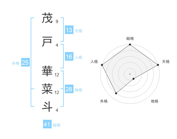 茂戸 華菜斗さんの天格は13画の5点!