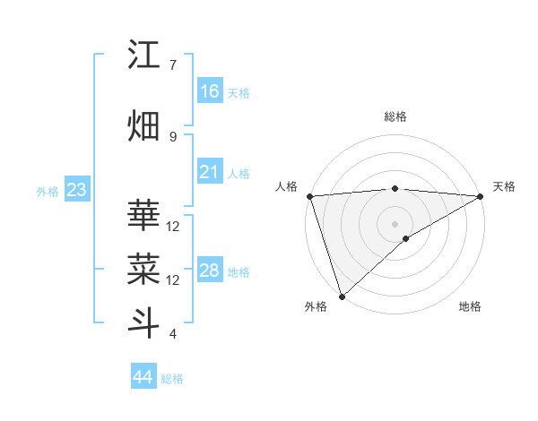 江畑 華菜斗さんを姓名の画数から五運を鑑定