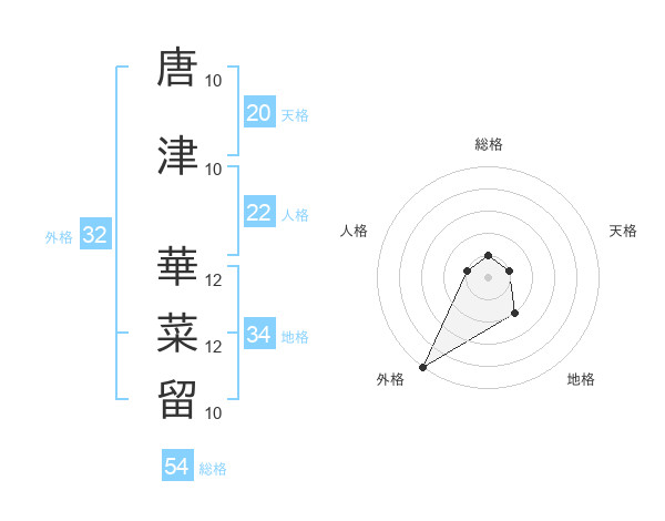 唐津 華菜留さんの外格は32画の5点!