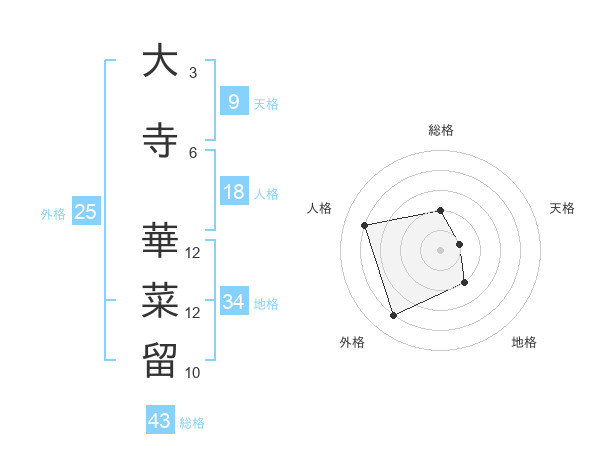 大寺 華菜留さんを姓名の画数から五運を鑑定
