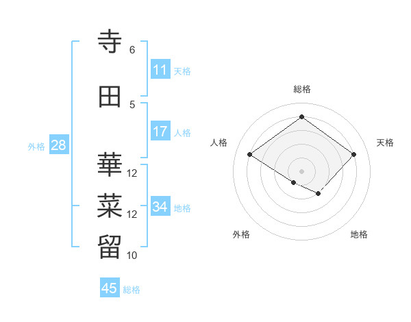 寺田 華菜留さんの天格は11画の4点!