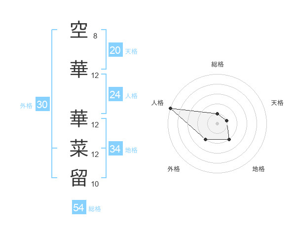 空華 華菜留さんを姓名の画数から五運を鑑定