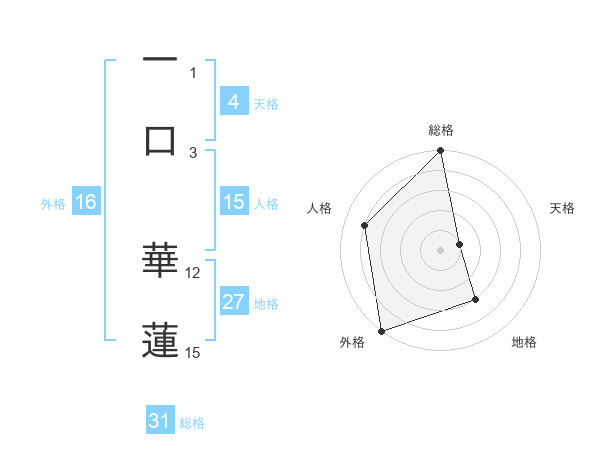 一口 華蓮さんの外格は16画の5点!