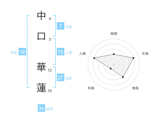 中口 華蓮さんの総格は34画の2点!