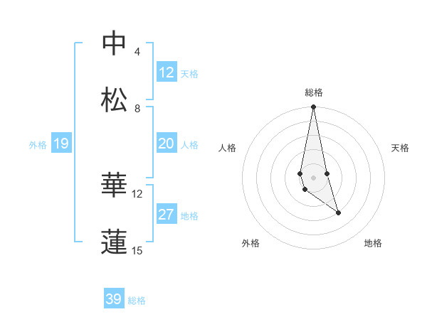 中松 華蓮さんの総格は39画の5点!