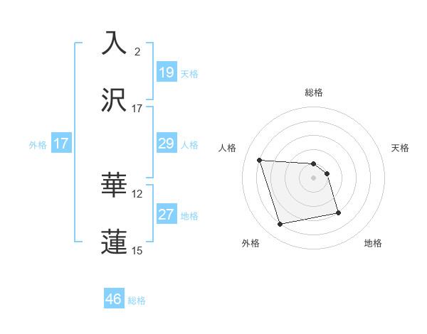 入沢 華蓮さんの総格は46画の1点!