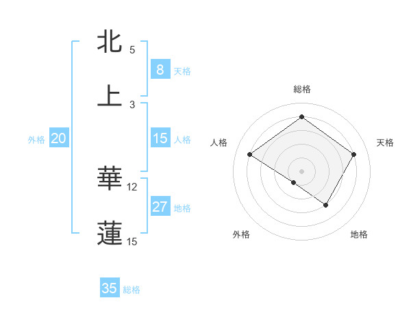 北上 華蓮さんを姓名の画数から五運を鑑定