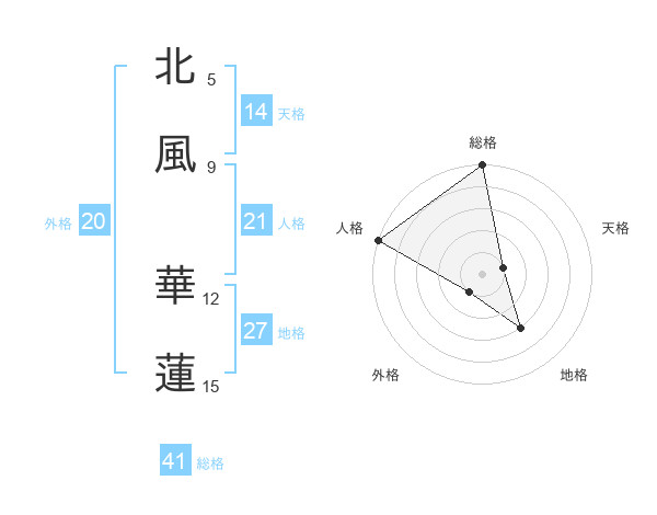北風 華蓮さんを姓名の画数から五運を鑑定