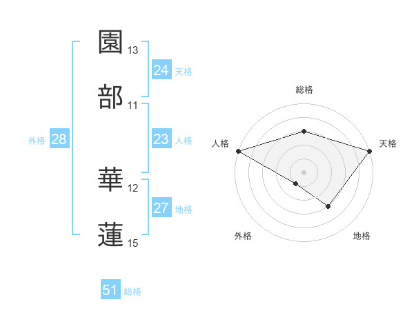 園部 華蓮さんの天格は24画の5点!