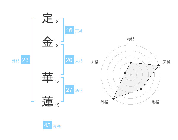 定金 華蓮さんの総格は43画の2点!