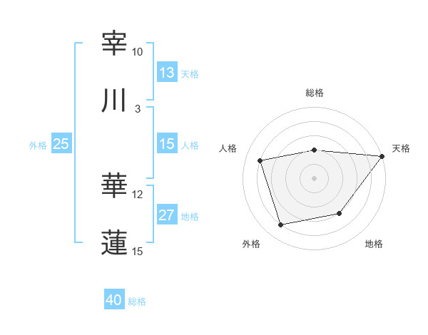 宰川 華蓮さんの天格は13画の5点!