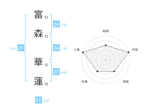 富森 華蓮さんの天格は24画の5点!