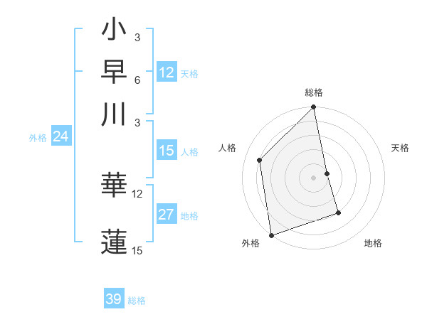 小早川 華蓮さんの総格は39画の5点!