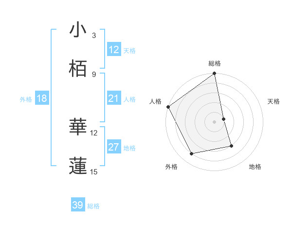 小栢 華蓮さんの総格は39画の5点!