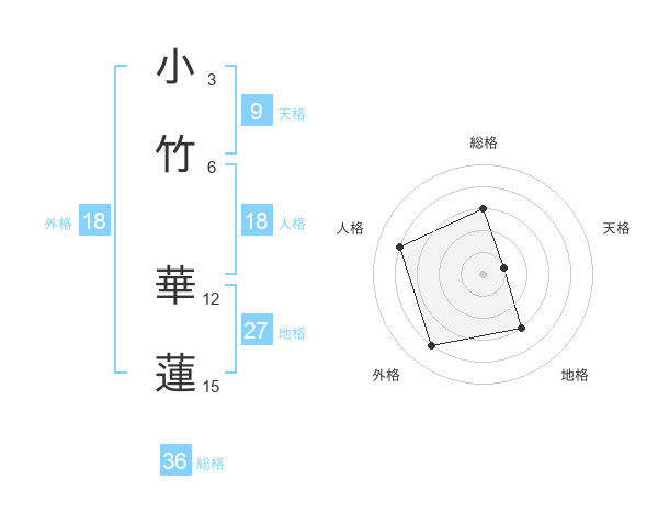 小竹 華蓮さんの総格は36画の3点!
