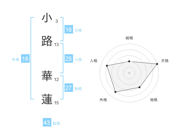 小路 華蓮さんの天格は16画の5点!