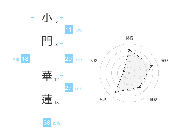 小門 華蓮さんの総格は38画の4点!