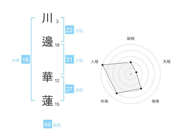川邊 華蓮さんを姓名の画数から五運を鑑定
