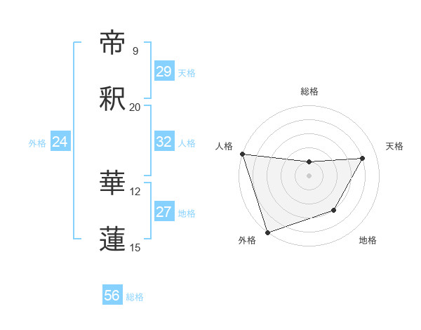 帝釈 華蓮さんを姓名の画数から五運を鑑定