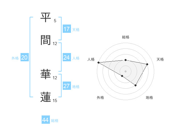 平間 華蓮さんを姓名の画数から五運を鑑定