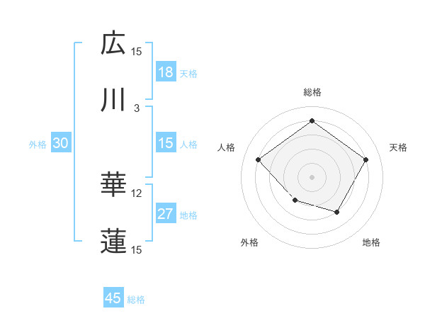 広川 華蓮さんを姓名の画数から五運を鑑定