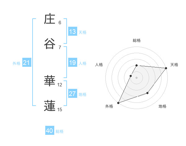 庄谷 華蓮さんを姓名の画数から五運を鑑定