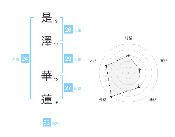 是澤 華蓮さんの総格は53画の3点!