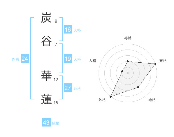 炭谷 華蓮さんの天格は16画の5点!
