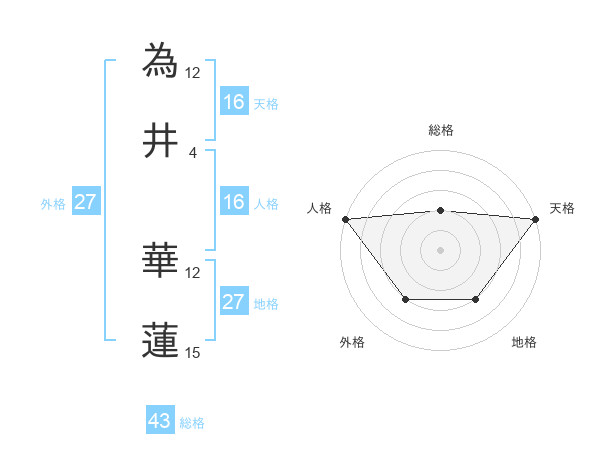 為井 華蓮さんの天格は16画の5点!