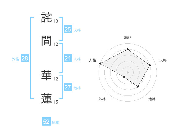 詫間 華蓮さんの総格は52画の4点!