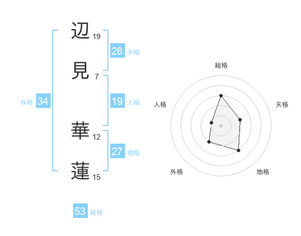 辺見 華蓮さんの総格は53画の3点!