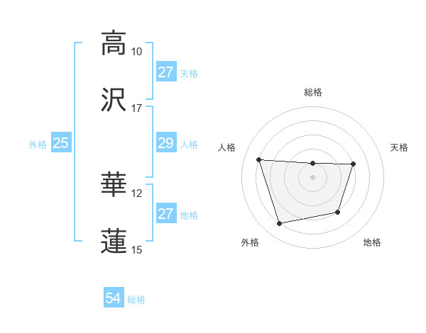 高沢 華蓮さんの地格は27画の3点!