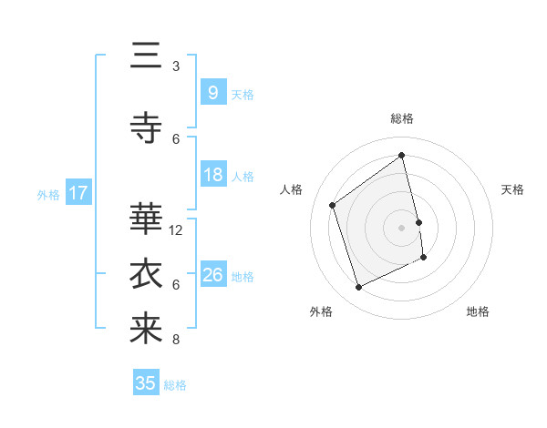 三寺 華衣来さんの総格は35画の4点!