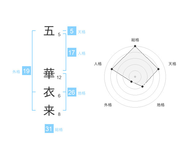 五 華衣来さんの総格は31画の5点!