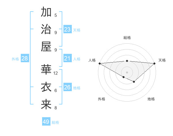 加治屋 華衣来さんを姓名の画数から五運を鑑定