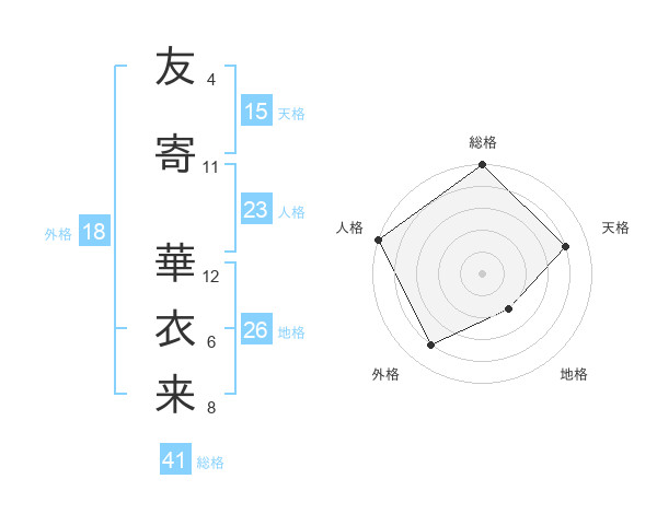 友寄 華衣来さんを姓名の画数から五運を鑑定