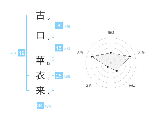 古口 華衣来さんを姓名の画数から五運を鑑定