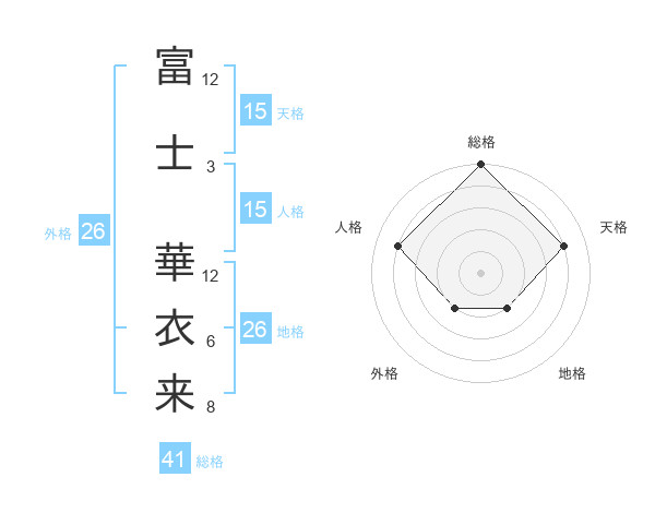 富士 華衣来さんを姓名の画数から五運を鑑定