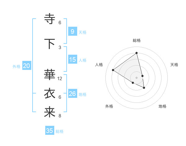 寺下 華衣来さんを姓名の画数から五運を鑑定