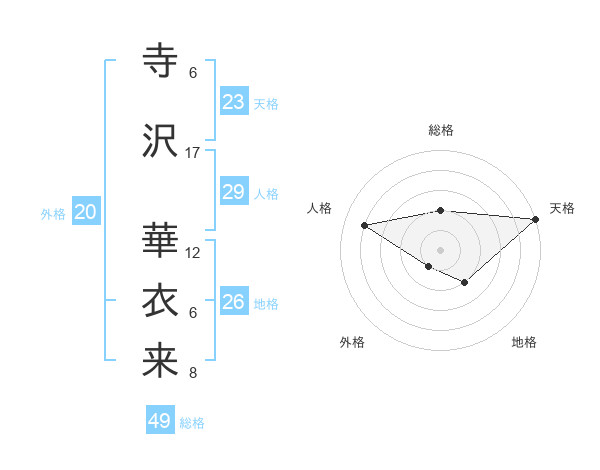 寺沢 華衣来さんの総格は49画の2点!