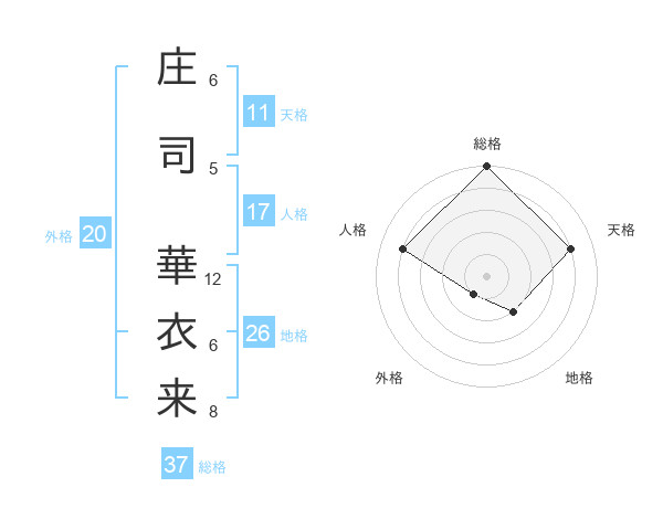 庄司 華衣来さんを姓名の画数から五運を鑑定