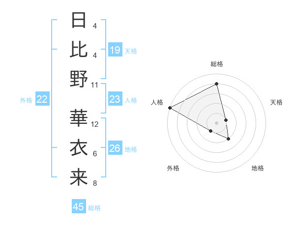 日比野 華衣来さんを姓名の画数から五運を鑑定