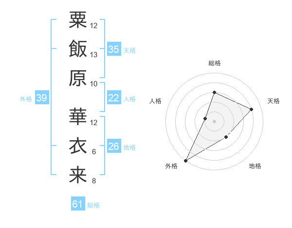 粟飯原 華衣来さんの外格は39画の5点!