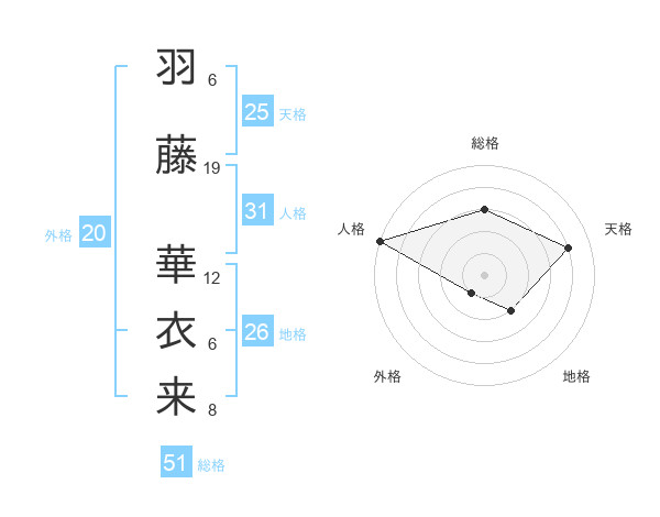羽藤 華衣来さんの総格は51画の3点!